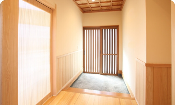扉を左右どちらかにスライドさせて開閉するドア。昔の住宅建築に多いタイプの玄関ドアです。