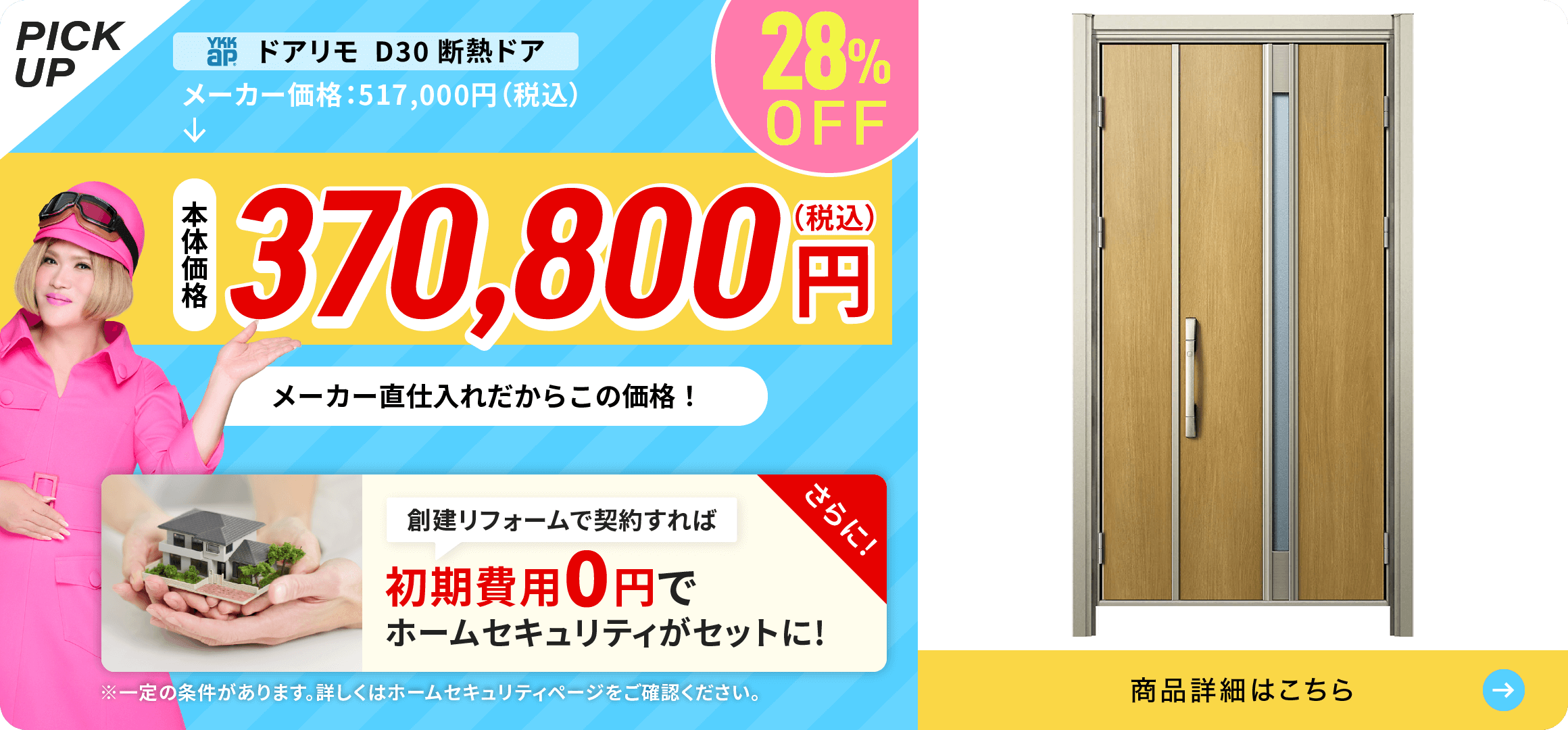 高断熱仕様よりも断熱性は劣るが、 ドアやドア枠からの熱の出入りを 大幅に抑えられる。 |