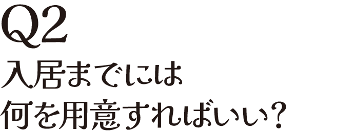 A)衣類やタオルなどの日用品、布団・枕等の寝具類は入居者ご自身でご用意ください。その他、生活に必要な家具類は施設にて用意しています。
