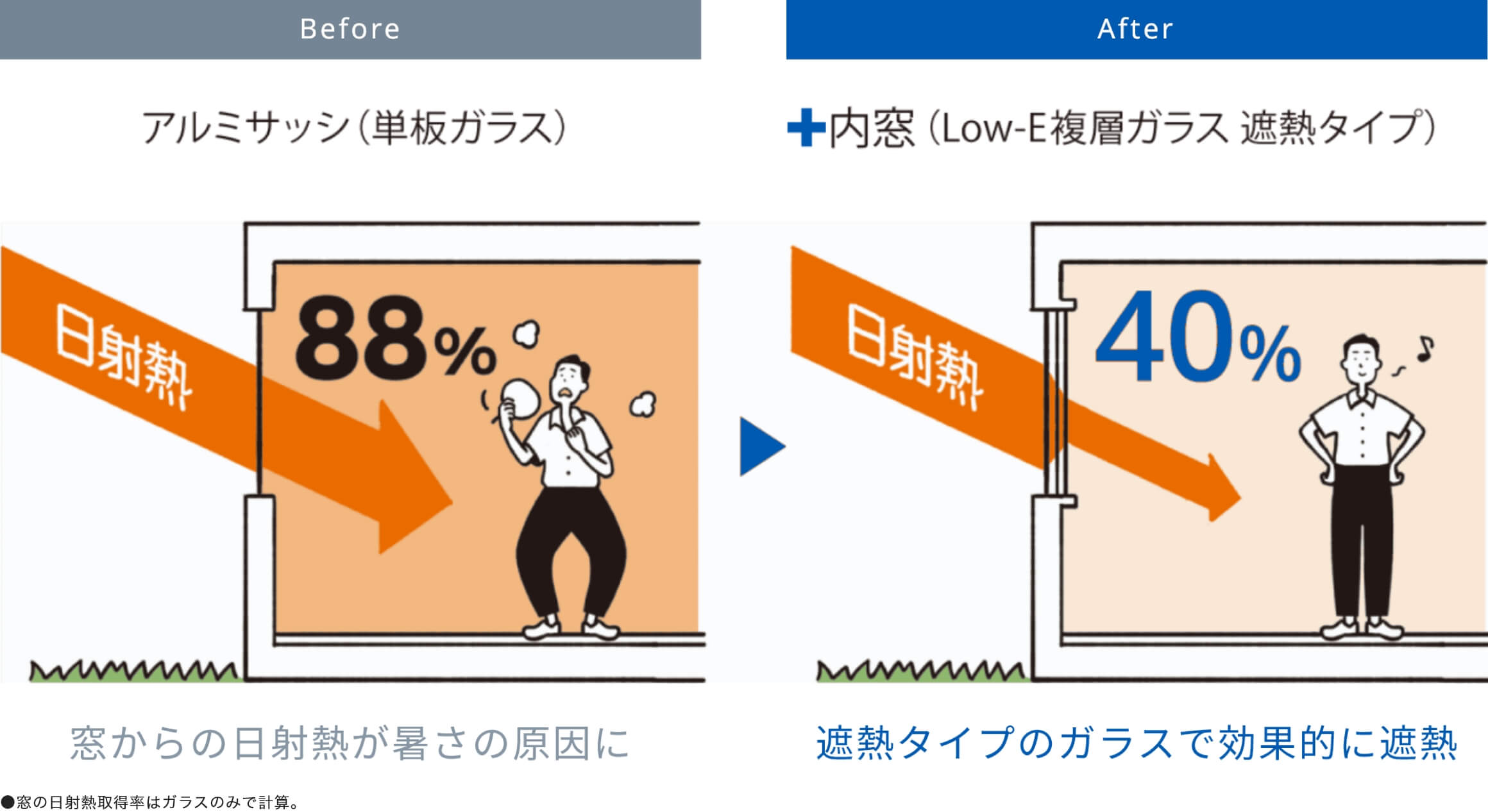 「内窓+日よけ」で日射熱をカット。冷房効果も高まります。