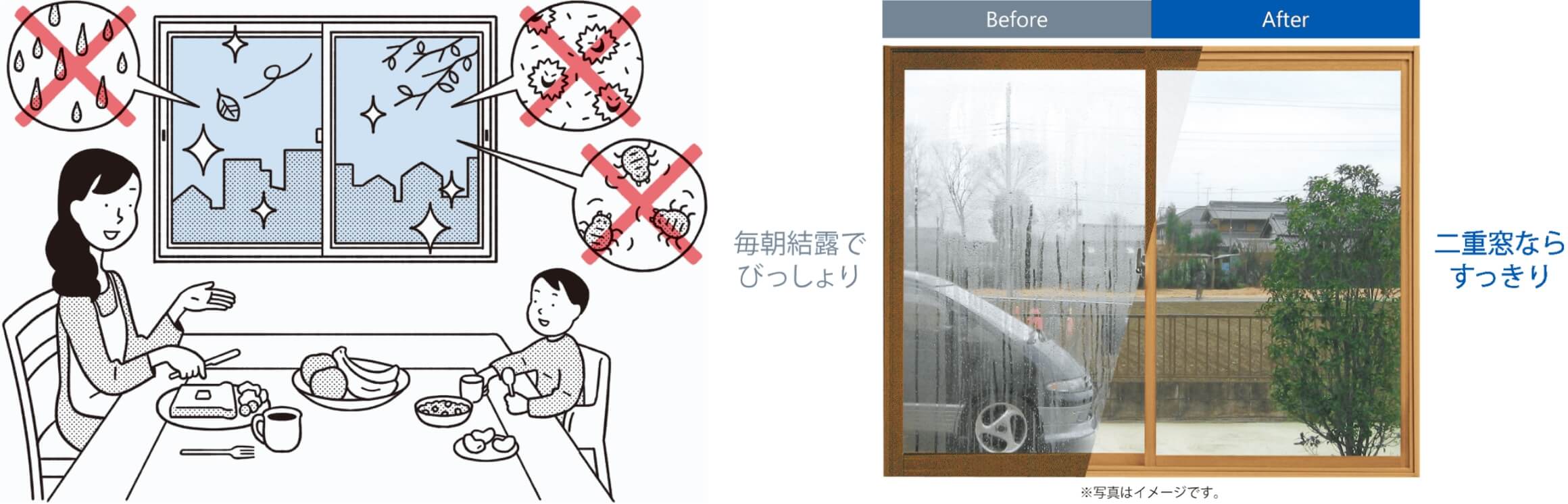 今ある窓と内窓の間に空気層ができることで、冷たい外気の影響を受けにくくなります。