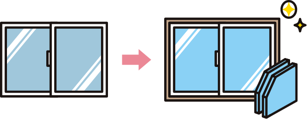 既存の窓の内側にもう一枚窓を取り付けるだけで、快適さと省エネ性がぐんとアップ。