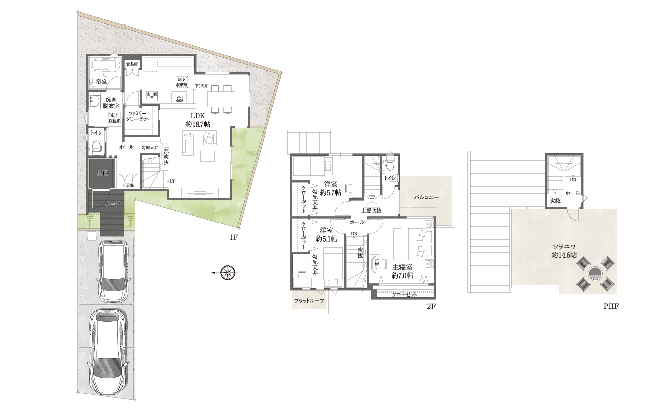 ■吹抜けリビング ■スタディーコーナー ■ソラニワ