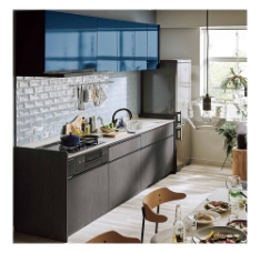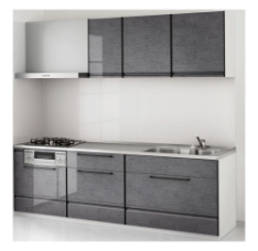 シンクやコンロが一直線に並ぶベーシックな形。壁付け設計でコンパクト。リフォームコストも抑えやすい点が魅力。