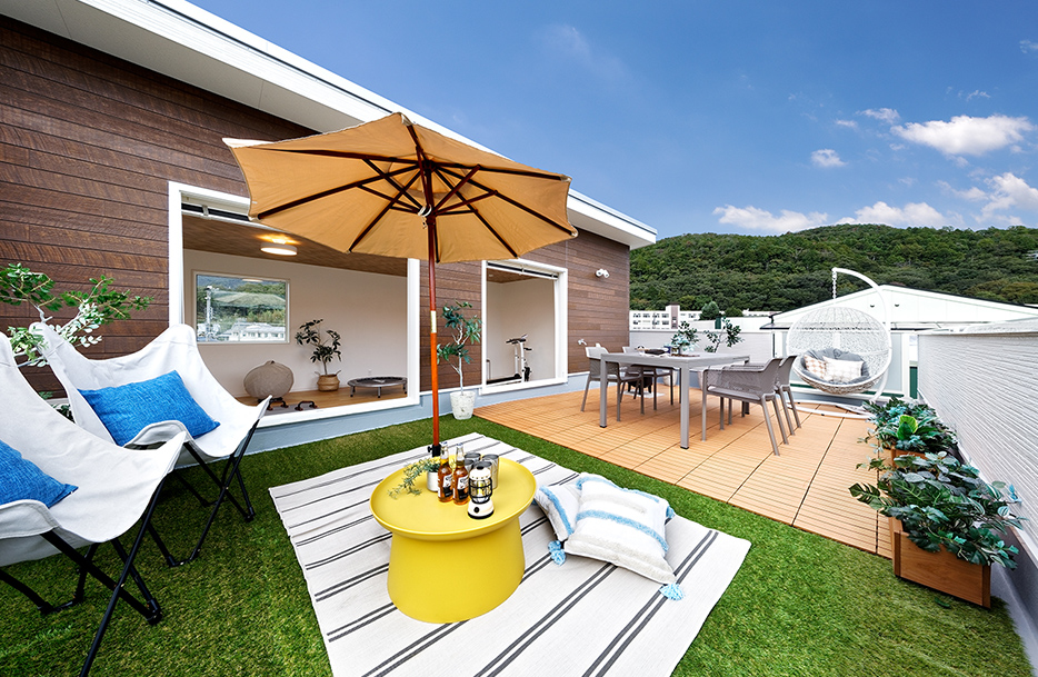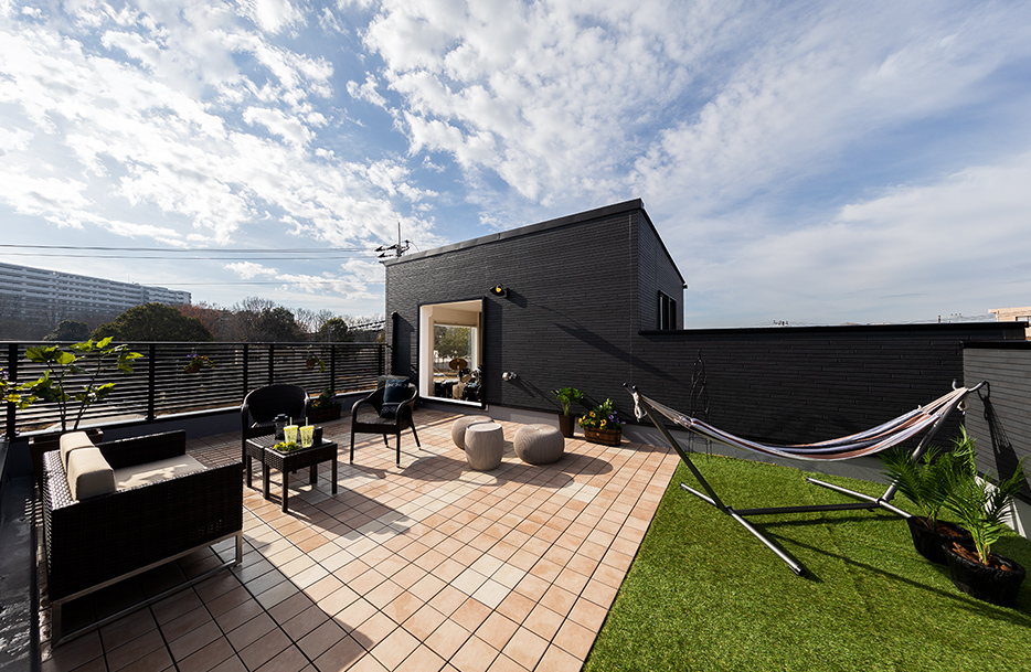 空の下での家族団欒の場。屋上に設けた「ソラニワ」は、