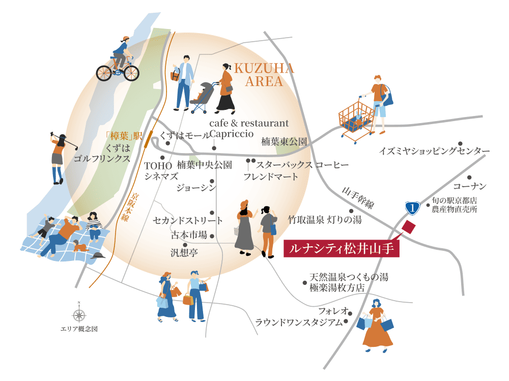 樟葉駅前に広がる京阪沿線最大級のショッピングモールで、京阪百貨店、イズミヤやTOHOシネマズを始め、各種専門店やレストランが集います。ベビーカー貸し出しや授乳室、キッズスペースなど子育て世代にもやさしく、イベントもいっぱいです。