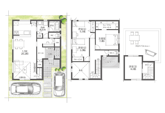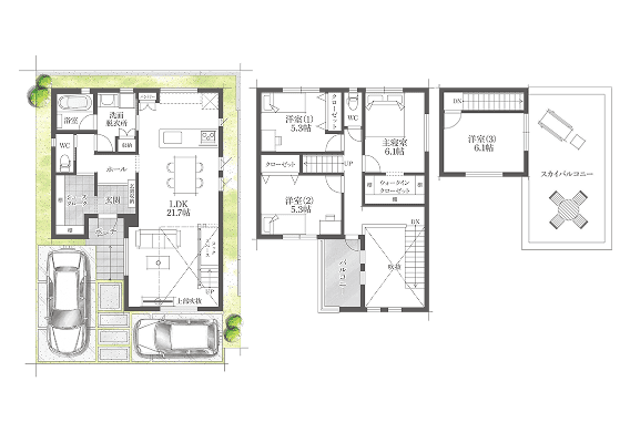 4LDK+ポーチ+SC+ヌックスペース+WIC+スカイバルコニー