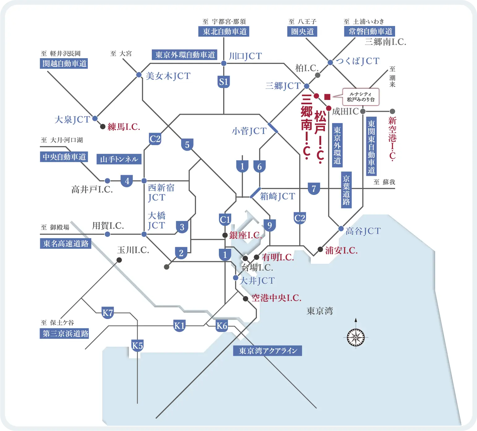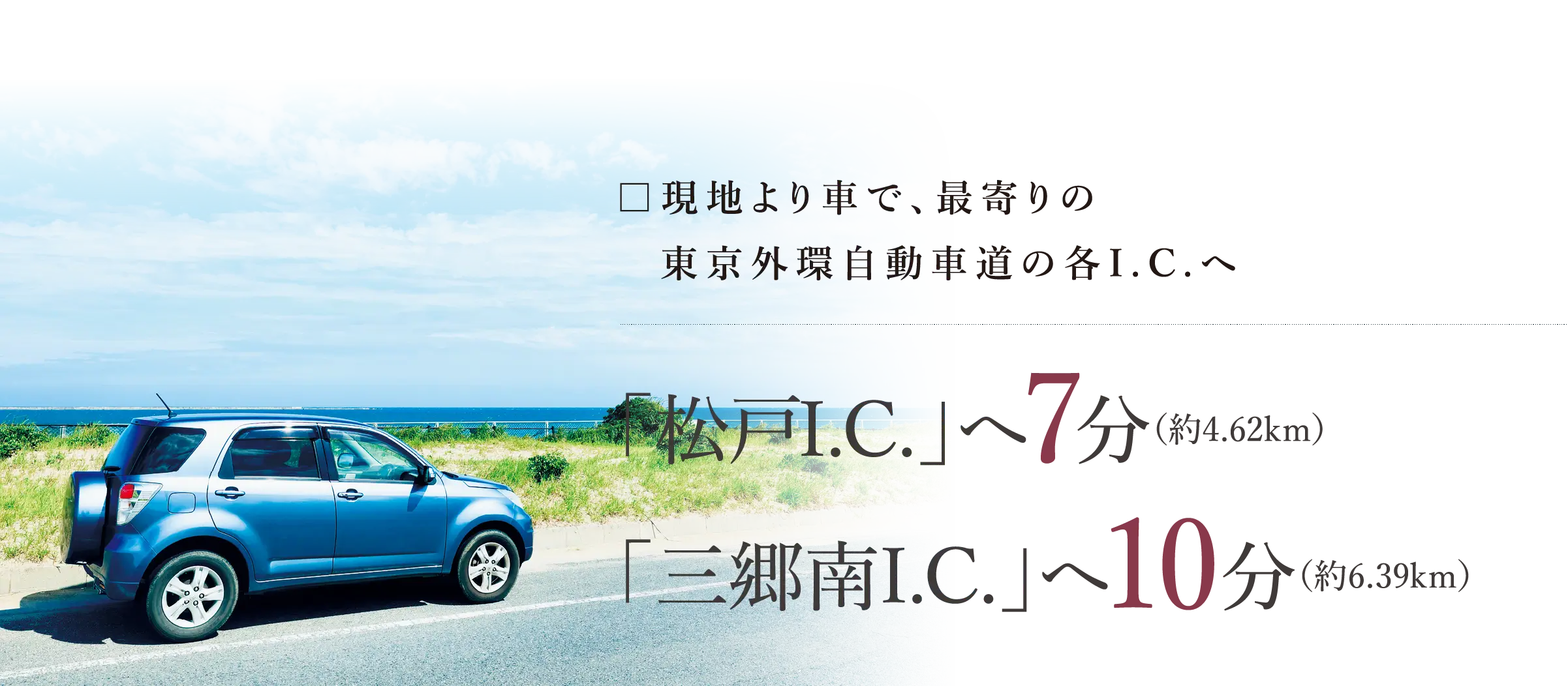 最寄りの2つのI.C.が可能にする、スムーズなカーアクセス。