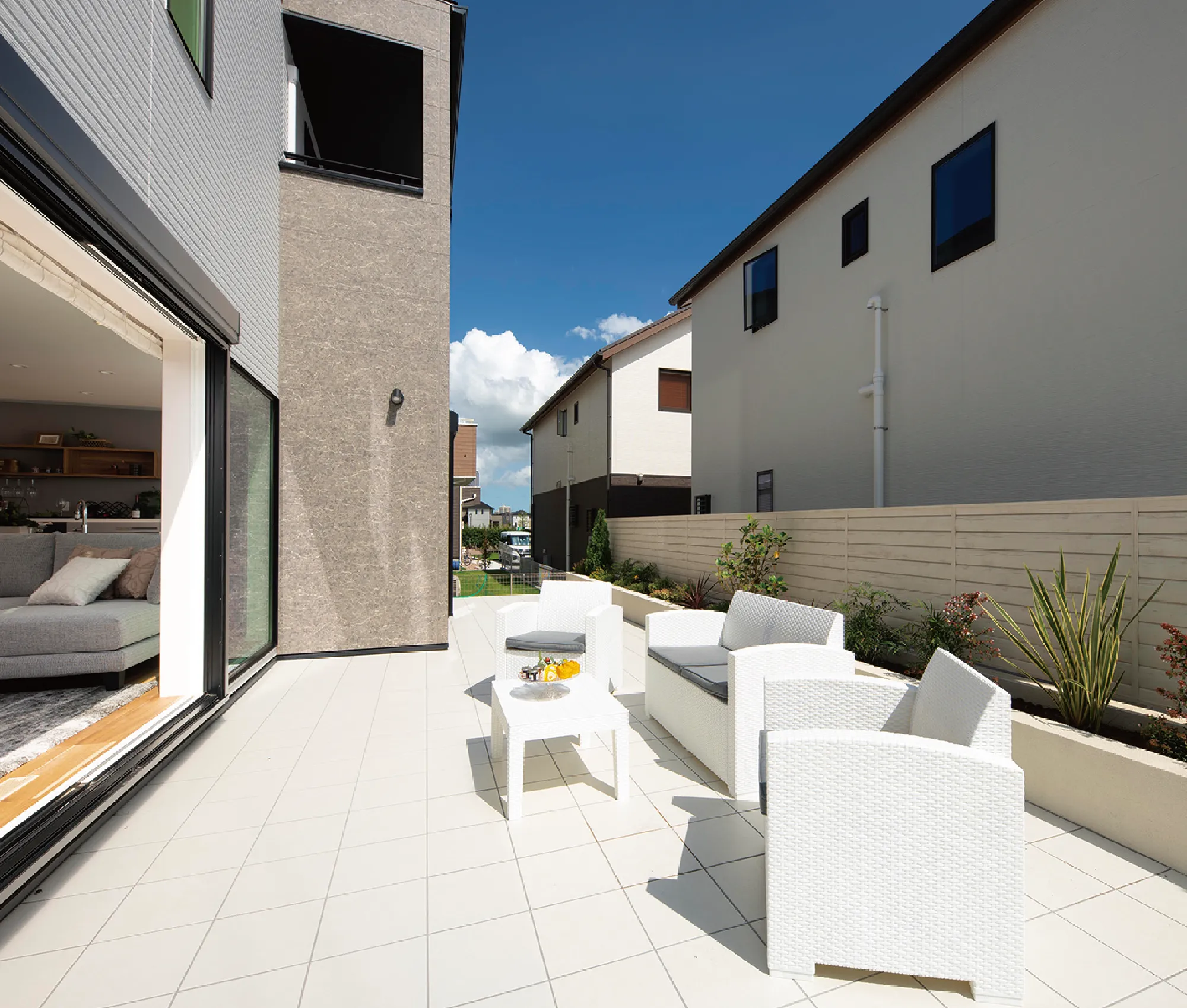 車も歩行者もスムーズに移動が可能。 - キッズスペースやオープンテラス、