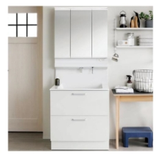 節水 : 水道代を抑えたい方に お手入れ簡単: 汚れにくい素材や、排水口のお掃除が簡単な設計 収納力 : 化粧品やタオルの量に合わせて、ミラー裏収納やキャビネットを
