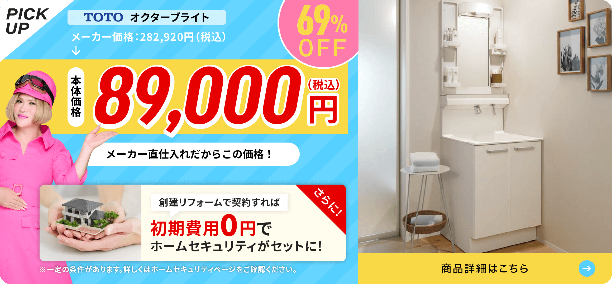 創建リフォームでは、TOTO、LIXIL、トクラス、タカラスタンダードなど信頼の国内メーカーの洗面台を中心に、補助金対象モデルやお掃除がラクなタイプを取り揃えています。