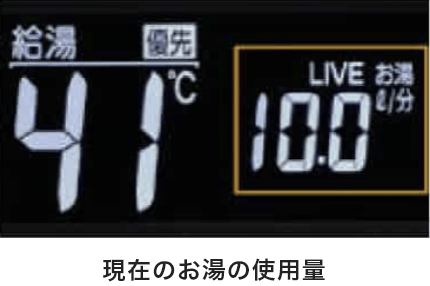 現在、使用している「お湯の量」を表示することで、家族みんなの省エネ行動を促せます。